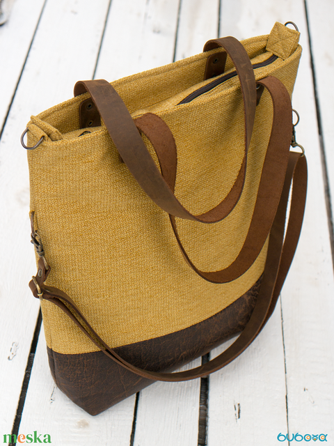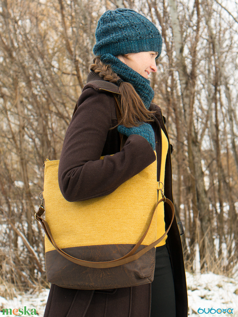 CAPENSIS kollekció - Variálható valódi bőr pántos mustársárga-barna szövettáska