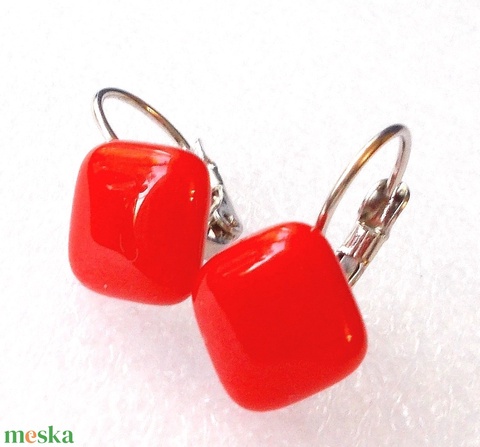 Piros kocka üveg fülbevaló, ajándék lányoknak, nőknek névnapra,születésnapra.
