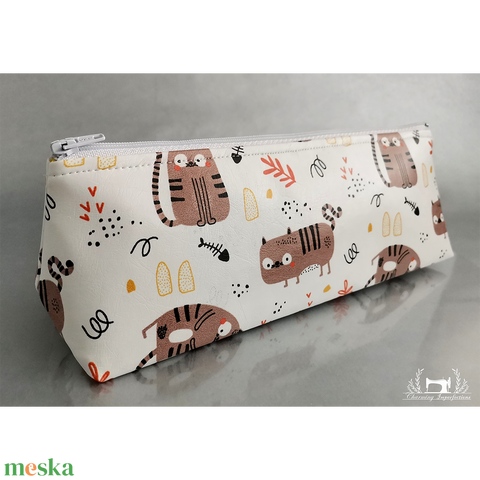 Háromszög formájú neszeszer / sminkes táska / tolltartó - Barna macskák