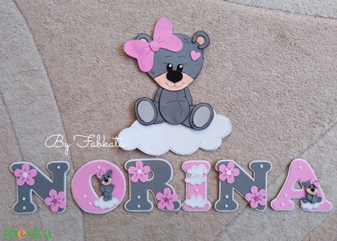 Teddy macis dekorgumi névtábla falmatrica babanév