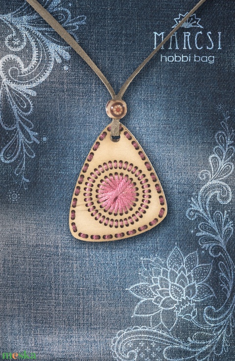 Rózsaszín csepp alakú hímzett medál, nyaklánc