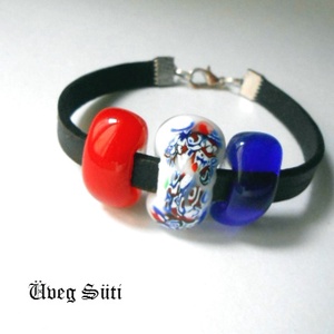 NEMESACÉL, Kék Piros Fehér festmény karkötő üvegékszer