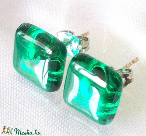 Smaragd üveg fülbevaló, ajándék névnapra, születésnapra.