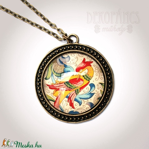 - Anyaga: medálalap, papír, ragasztó, üveglencse, lánc