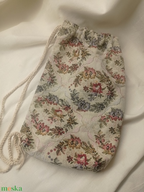 Vállra akasztható, barokkos mintájú tarisznya, szatyor, táska
