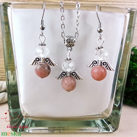 Lepidolit ásvány angyal nyaklánc fülbevaló szett karácsonyi ajándék ötlet nőnek lánynak