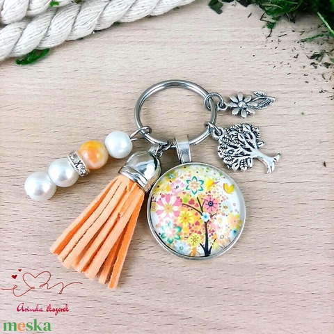 Életfa narancs bojtos üveglencsés kulcstartó táskadísz