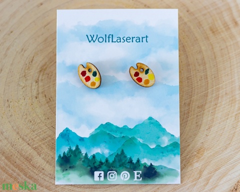 Festő paletta beszúrós fa fülbevaló, bedugós ékszer művészeknek, fiatal hölgynek