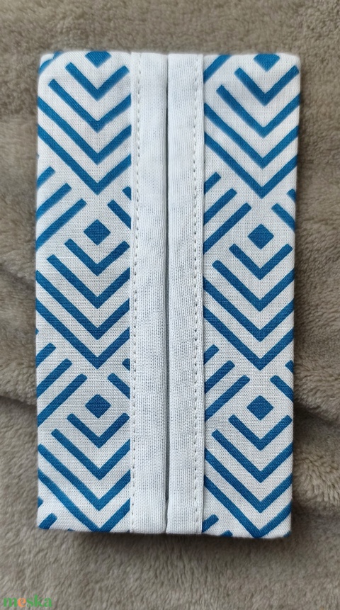 Türkiz geometrikus mintás papír zsebkendő tartó