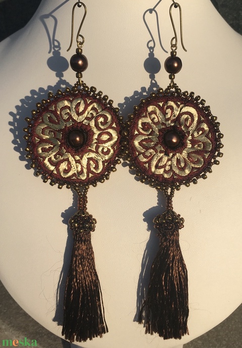 - Anyaga: textil, üveggyöngy, fémalkatrész, selyemrojt