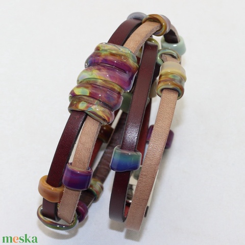 Jungle- duplabőr karkötő-egyedi üveggyöngyökkel