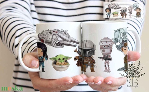 Csillagharcos bögre, űrhajós kerámia bögre, csillagok háborúja mintás bögre, mandalorian mintás bögre