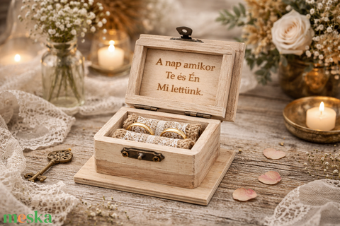 Romantikus gyűrűtartó ládika, doboz jutával bélelve