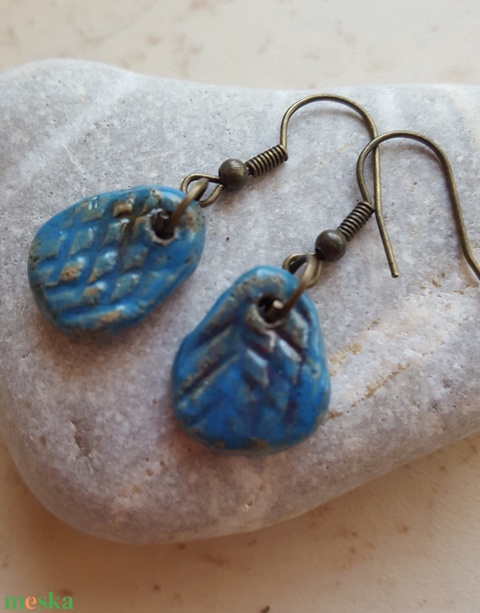 "Kék csepp" raku kerámia fülbevaló (ékszer)