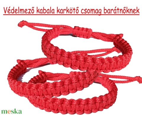 Piros védelmező kabala makramé karkötő csomag barátnőknek (3 darab)