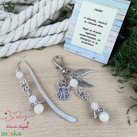 Holdkő ásvány angyal könyvjelző kulcstartó táskadísz szett