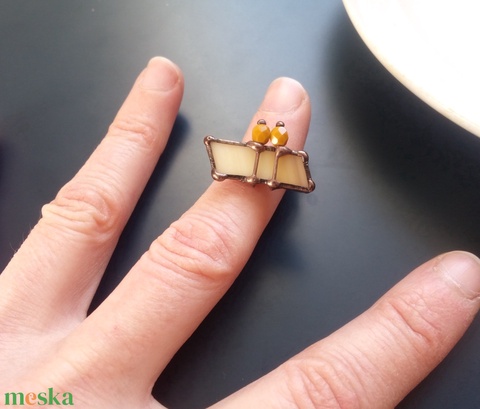 - Anyaga: színes üveg, ón, rézdrót, üveg, gyöngy, üveggyöngy