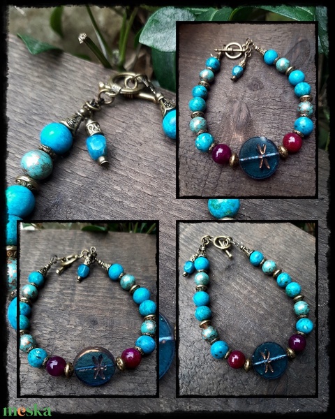 achát, cseh gyöngy, fém köztesek, gyöngy