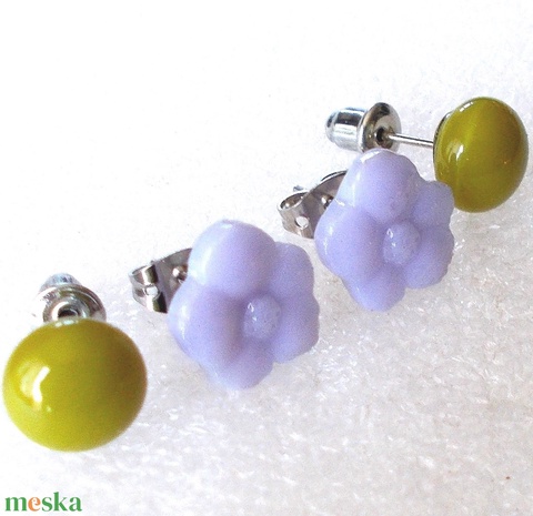 Levendula zölddel fülbevaló páros, ajándék nőknek névnapra, születésnapra.