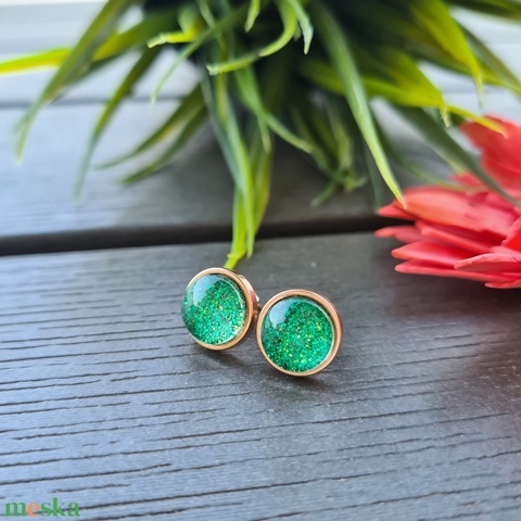 Csillogó sötét zöld - rosegold nemesacél fülbevaló