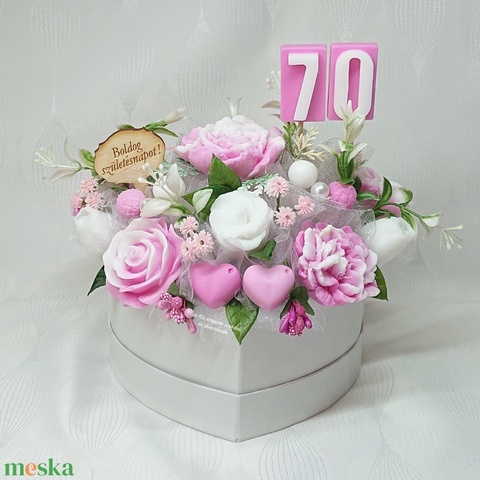 Születésnapi szappanvirág csokor számmal és fa táblával