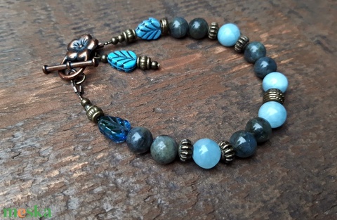 Labradorit és akvamarin karkötő