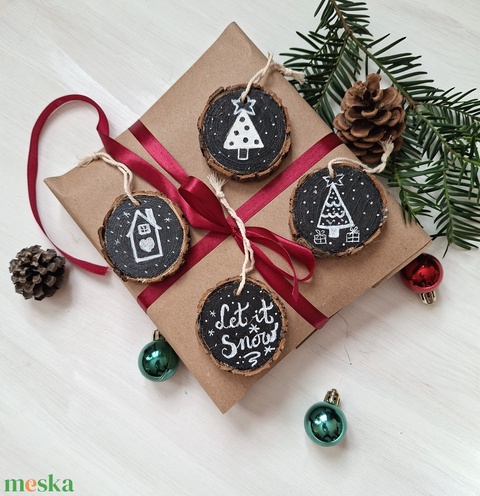 Let it snow! Karácsonyi fakorongok 4db, ajándékkísérők
