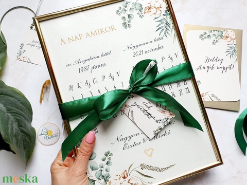 Anyák napi ajándék, csomag, Képkerettel, képeslappal, ajándékkísérővel és masnival, anyáknapjára, naptár, nagymamának