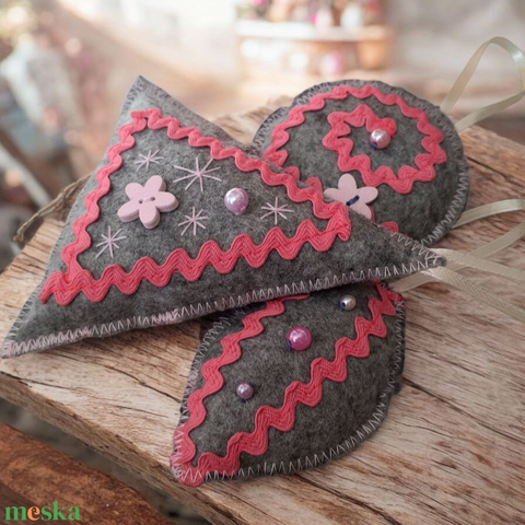 Szürke-rózsaszínnel 3 db-os Filc karácsonyfadísz