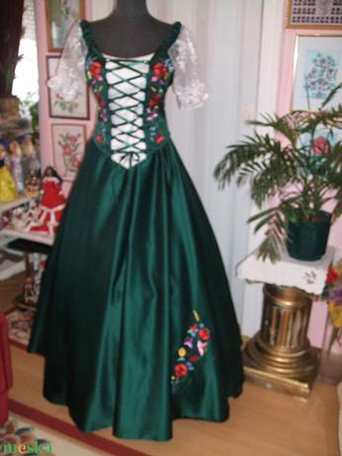 Kalocsai himzett elegáns menyasszonyi, menyecske ruha.