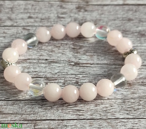Rózsakvarc - angyal aurakvarc ásványkarkötő, féldrágakő ásvány karkötő, egyedi ásványkarkötő