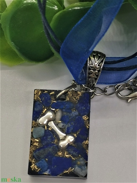 Orgonit-sungit kis téglalap medál lapis lazulival fém kutyacsonttal , rézforgáccsal