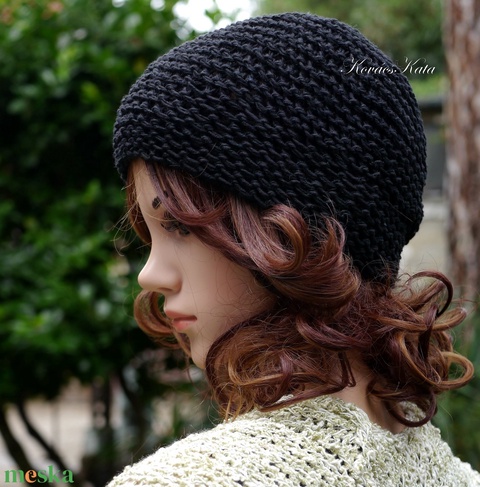 BEANIE / alma - trendi kézzel kötött pamut sapka / fekete