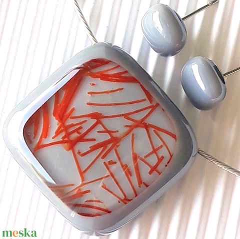 Galambszürke csillaghullás üveg medál és fülbevaló NEMESACÉL/ORVOSI FÉM üvegékszer szett