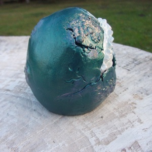 agyag, ólommentes máz, akrilfesték, üvegfesték, domború kontúr
