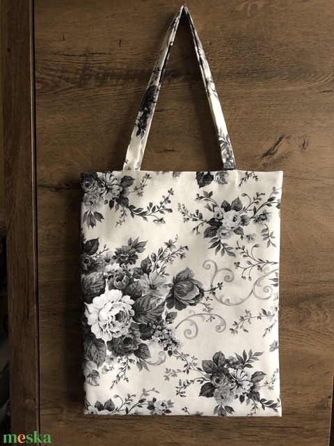 Textil szatyor szürke rózsa mintával