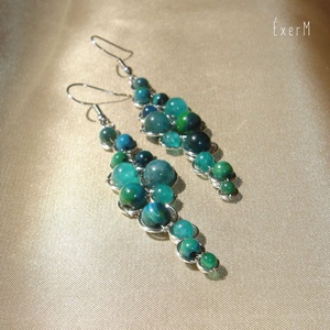 ásvány, türkiz, achát, ezüstözött ékszerdrót, ezüstözött fülbevaló akasztó