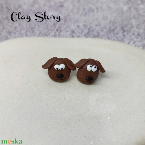Kutya és csont polymer clay fülbevaló/Kutyus és kutyaház süthető gyurma füli
