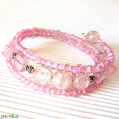Nosztalgia rózsacsokor karkötő, hegyikristály ásványékszer, üveggyöngy