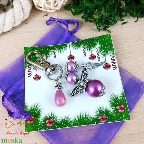 Lila angyalka kulcstartó táskadísz anyák napja ballagás évzáró pedagógus karácsony szülinap névnap könyvmoly ajándék