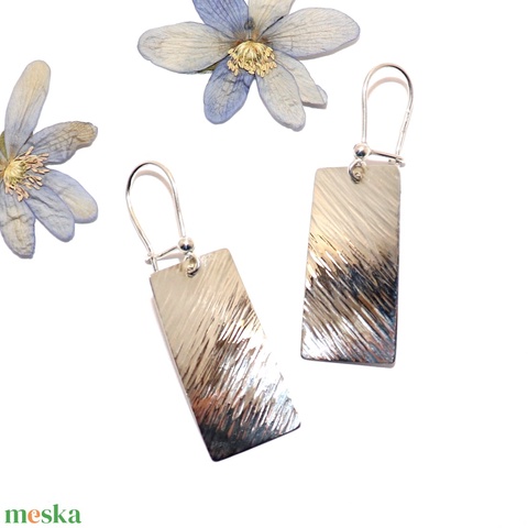 Kalapált téglalap, női ezüst fülbevaló pár (EF.076)