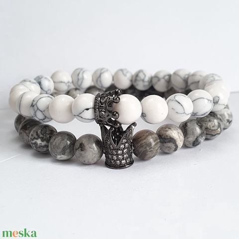 King - Queen - jáspis- howlit - páros ásvány karkötő