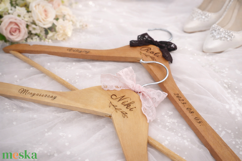 Esküvői gravírozott, díszített, fa vállfa