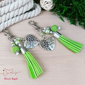 Anya lánya világoszöld bojtos kulcstartó táskadísz szett anyák napja ballagás évzáró pedagógus karácsony szülinap névnap