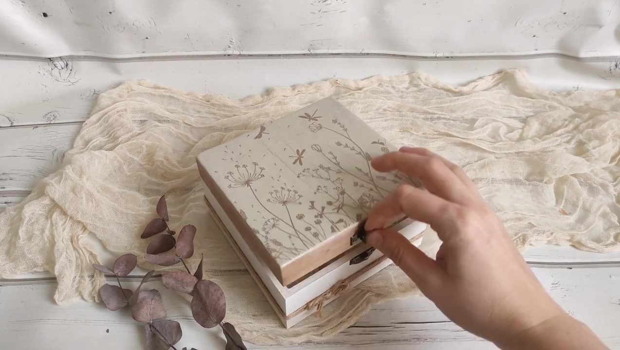 - Anyag/Összetevő ragasztó, kenderzsineg, vízbázisú lakk, fadoboz, akrilfesték, gyöngytyúktoll, szappan, fa, fagyapot
