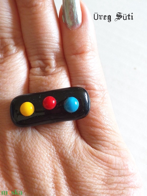 NEMESACÉL Fekete piros sárga kék bolygó gyűrű üvegékszer ajàndék nőknek