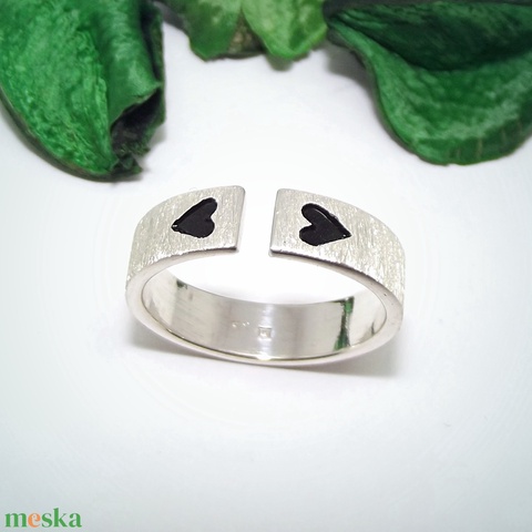 Női karikagyűrű fekete szívvel, ezüst, állítható (EGY.084)