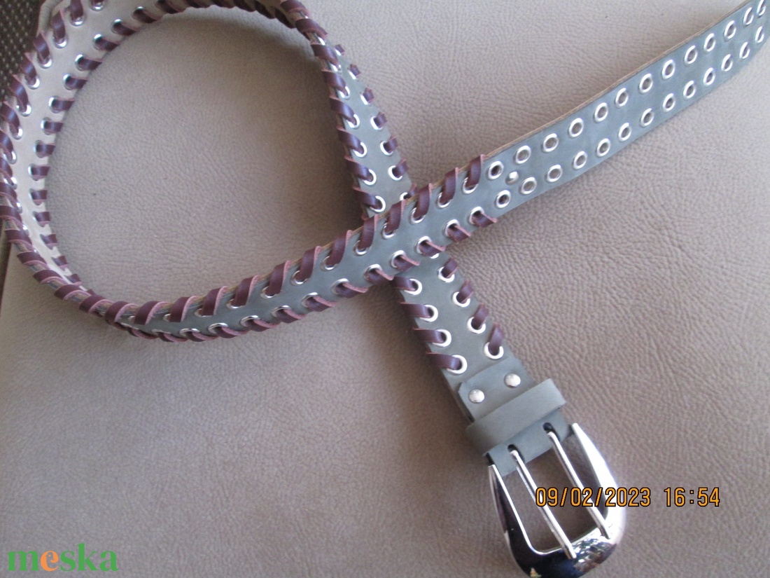 Öv sok lyukkal és bőrfűzéssel