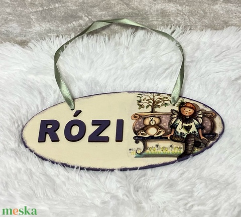Egyedi névre szóló dekupázsolt névtábla lányoknak - babszoba dekoráció