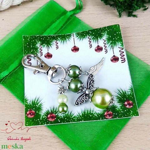 Zöld angyalkás kulcstartó táskadísz anyák napja ballagás évzáró pedagógus karácsony szülinap névnap
